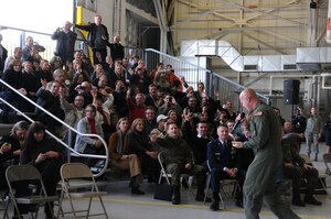 Jens Hanefeld, Minister Deputy Chief of Mission Embassy of the Federal Republic of Germany, Washington, D.C., and other members from the embassy, visit the 49th Air Refueling Wing at Joint Base Andrews, Md., Oct. 17. The visit included a base tour, demonstrations from the 11th Wing Security Force's