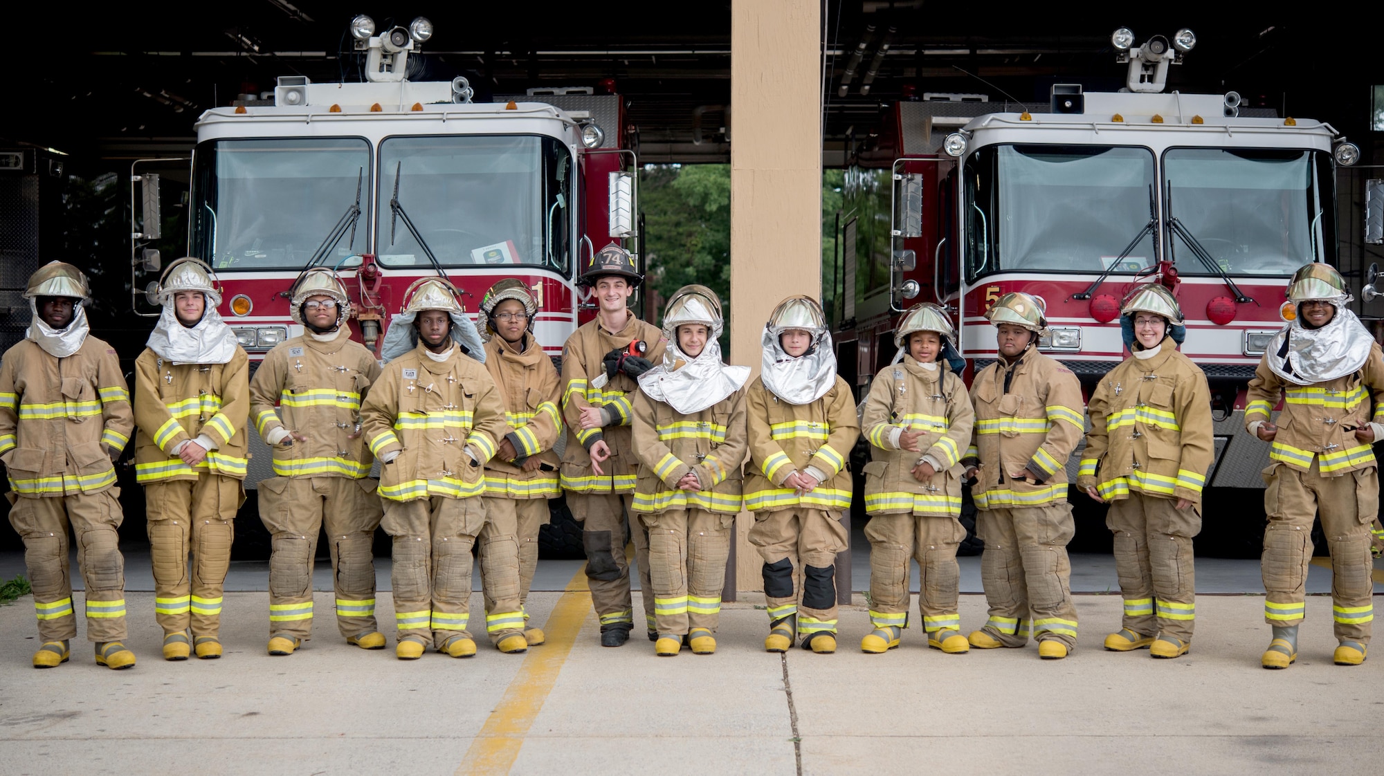 The cadets received hands-on, in-depth training on search and rescue procedures, such as donning and doffing fire safety gear, using defibrillators and tourniquets, performing CPR, hose carry techniques and more.